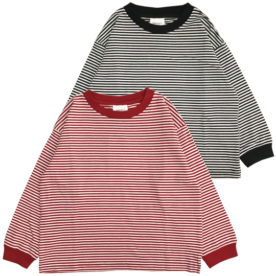 | 天竺ボーダー 長袖Tシャツ Color:RED,BLACK Size:BM(90cm)~160cm Price:5,940円~7,700円 通販はこちらから |