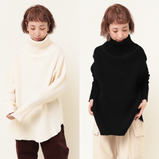 | ワッフルニットソータートルプルオーバー Color:OFF WHITE,BLACK Size:М Price:13,200円 通販はこちらから |