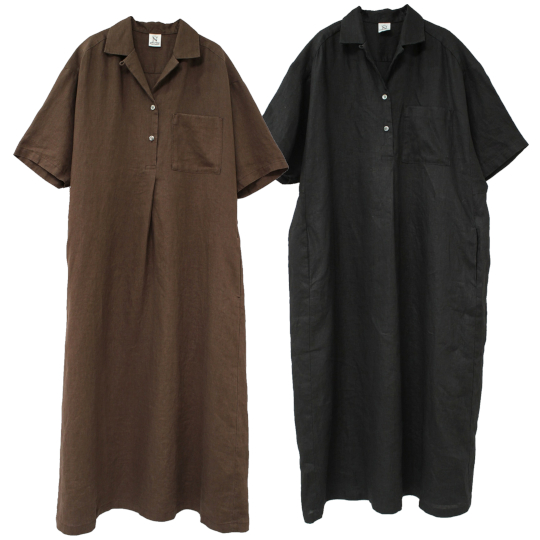 | リネンオープンカラーワンピース Color:BROWN,BLACK Size:F Price:22,000円 通販はこちらから |