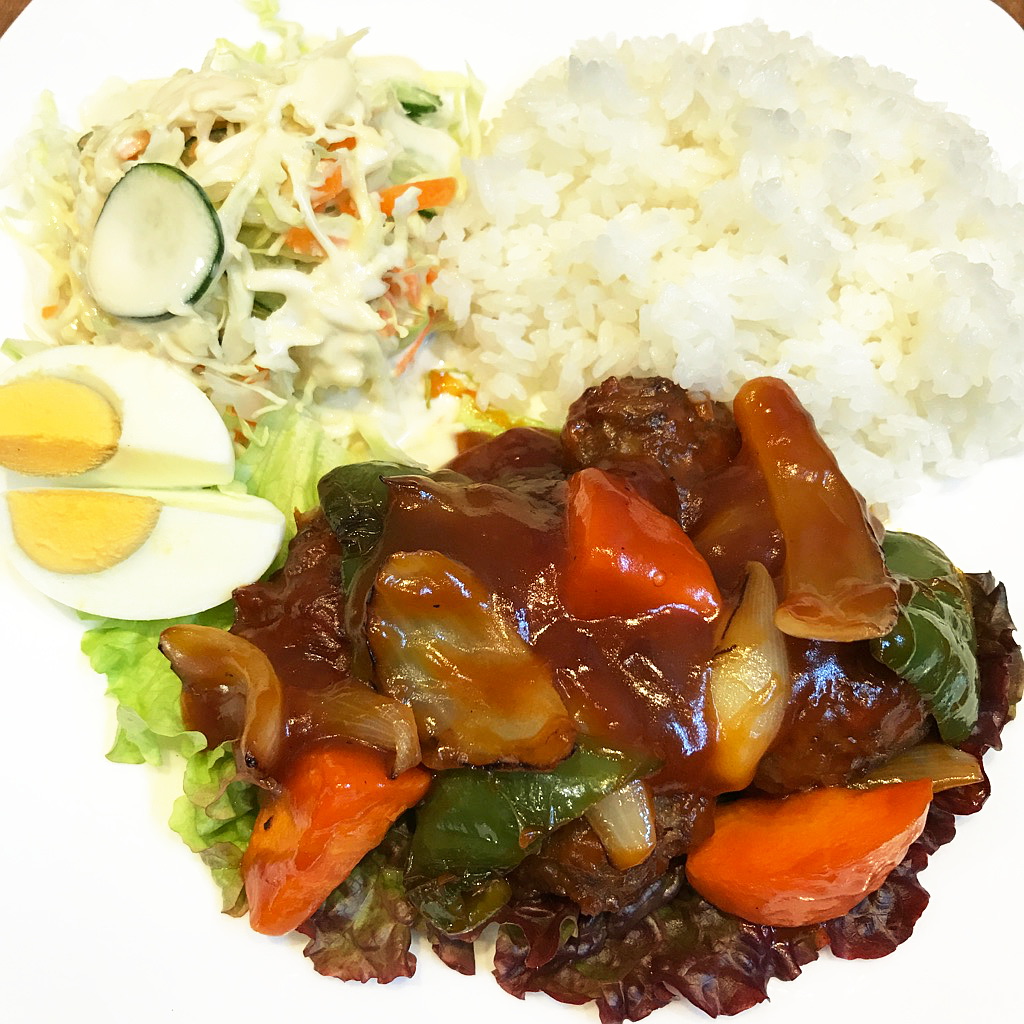 今日のランチは「酢豚風 揚げ団子の甘酢あんかけ」です♪