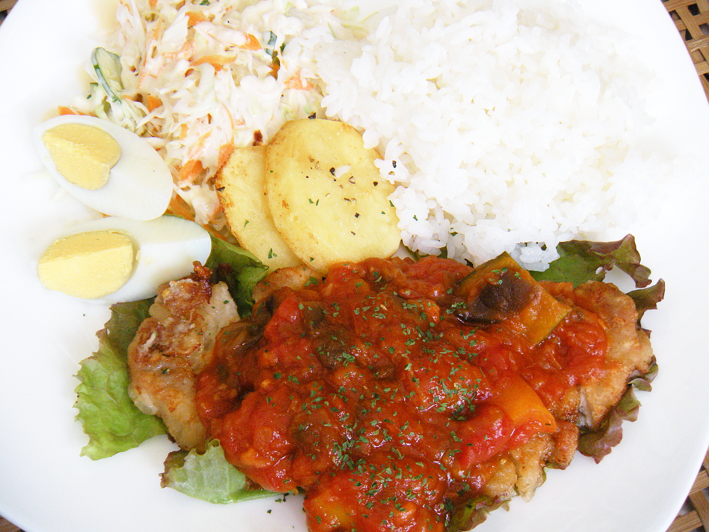 今日と明日のランチは「豚肉のソテー 夏野菜とトマトのソースがけ」です♪