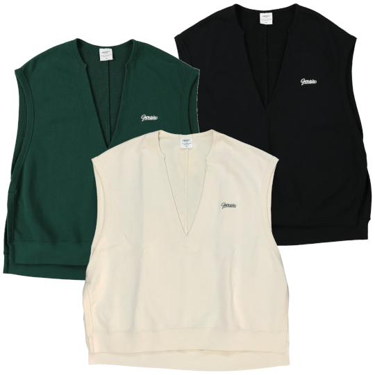 | 裏毛サイドオープン スキッパーベスト Color:OFF WHITE,DARK GREEN,BLACK Size:160cm Price:9,350円 通販はこちらから |