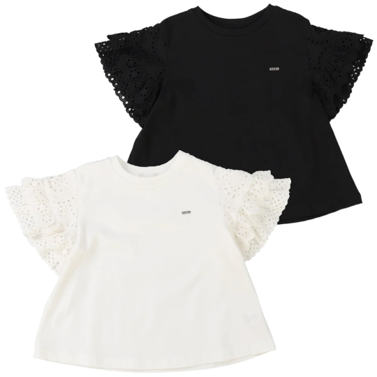 | サラサラ天竺 袖レース 半袖Tシャツ Color:WHITE,BLACK Size:BM(90)~02 Price:11,000円~13,200円 通販はこちらから |