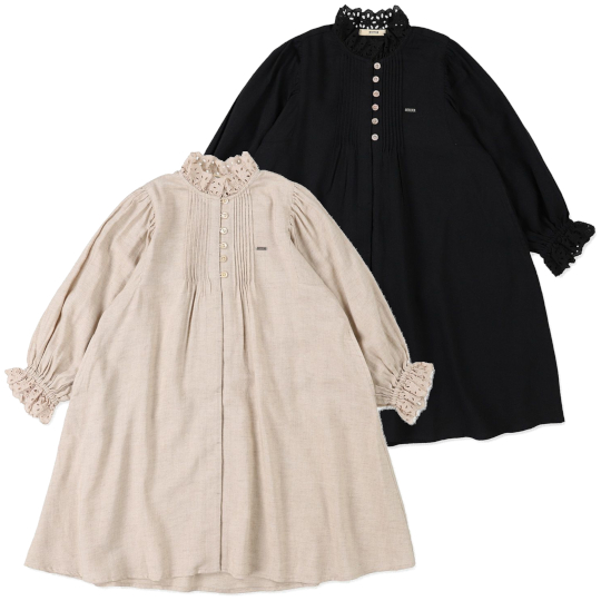 | 綿モダールウールリネン ひざ下丈ワンピース Color:BEIGE,BLACK Size:BM(90cm)~02 Price:19,800円~30,800円 通販はこちらから |