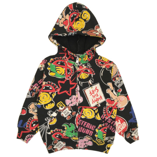 | TAGGING MINI 総柄 裏起毛ジップアップパーカー Color:Black Size:90~120 Price:16,500円~17,600円 通販はこちらから |