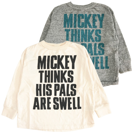 | ビンテージトンプキン天竺 MICKEY SAYS Tシャツ Color:WHITE,GRAY Size:100cm~02 Price:11,990円~14,190円 通販はこちらから |