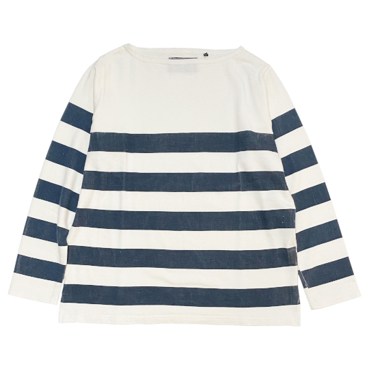 | 綿×レーヨン天竺 ボートネック プリントボーダー 長袖Tシャツ Color:WHITE×NAVY Size:S,M Price:21,890円 通販はこちらから |
