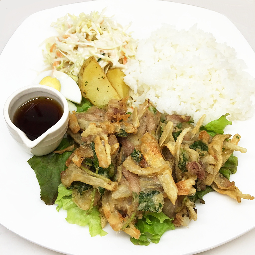 今日と明日のランチは「ゴボウと豚肉のかき揚げ」です♪