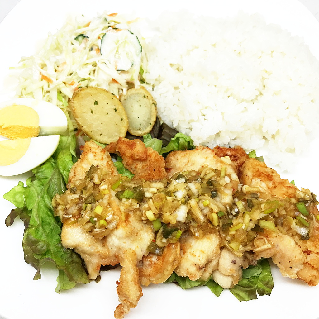 今日と明日のランチは「鶏肉の揚げ焼き ねぎポン酢がけ」です♪