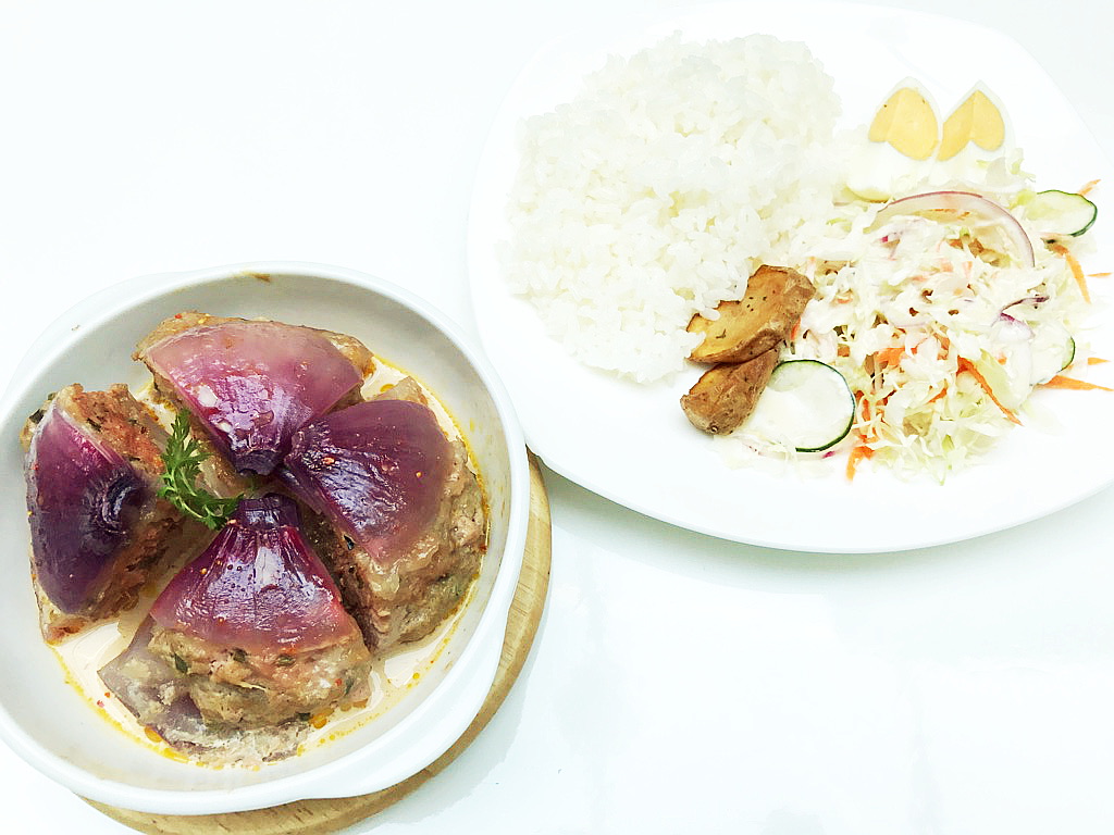 今日と明日のランチは「タマネギと挽き肉の重ね蒸し」です♪
