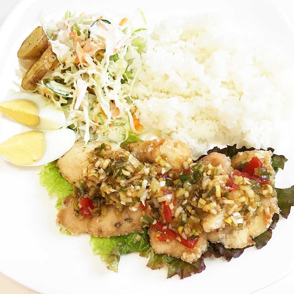 今日と明日のランチは「鶏肉のソテー ねぎポン酢ソースがけ」です♪