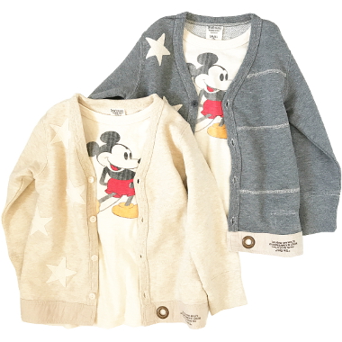 | カラートップウラケ MICKEY レイヤード カーディガン Color:Off White、Gray Size:100~160 Price:13,932円~15,552円(税込) 通販はこちらから |
