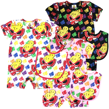 | ROLLING MINI MULTI COLOR 総柄 ショートオール+スタイ セット Color:White、Pink、Black Size:FREE(70-80) Price:8,640円 通販はこちらから |