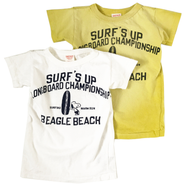 | ビンテージテンジク SNOOPY SURF TEE Color:White、Yellow Size:90~170 Price:7,992円~11,232円 通販はこちらから |